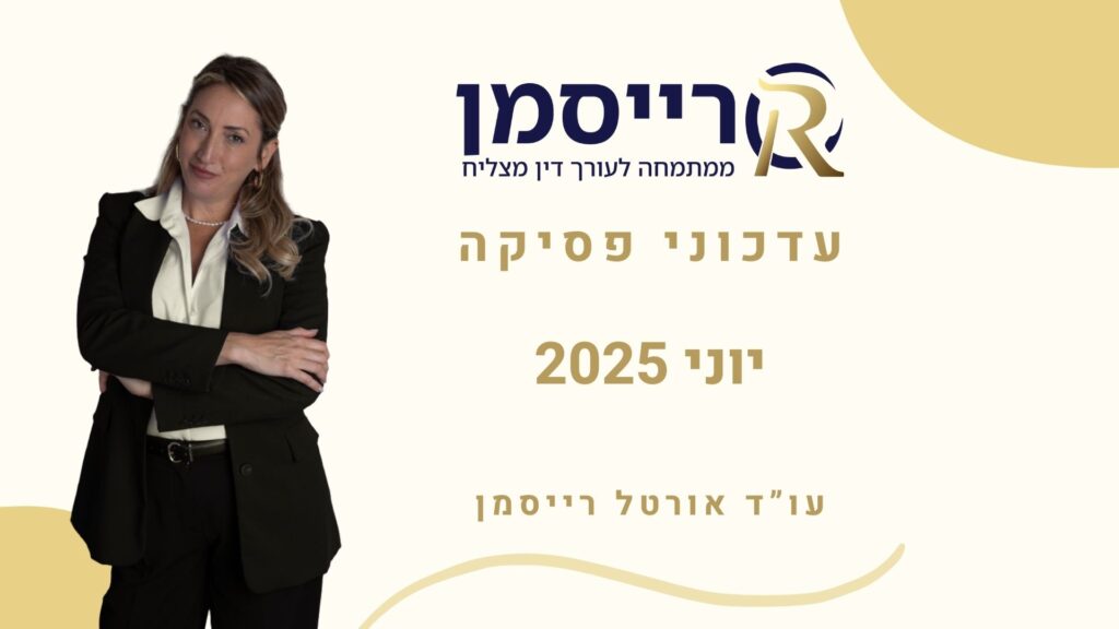 עדכוני פסיקה יולי 2025 | עו״ד אורטל רייסמן Read More »