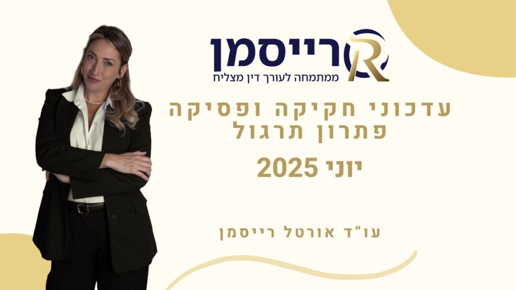 עדכוני חקיקה יולי 2025 | עו״ד אורטל רייסמן Read More »