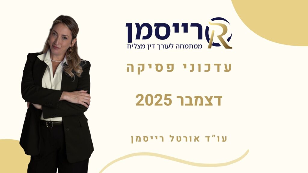 עדכוני פסיקה דצמבר 2025 | עו״ד אורטל רייסמן Read More »