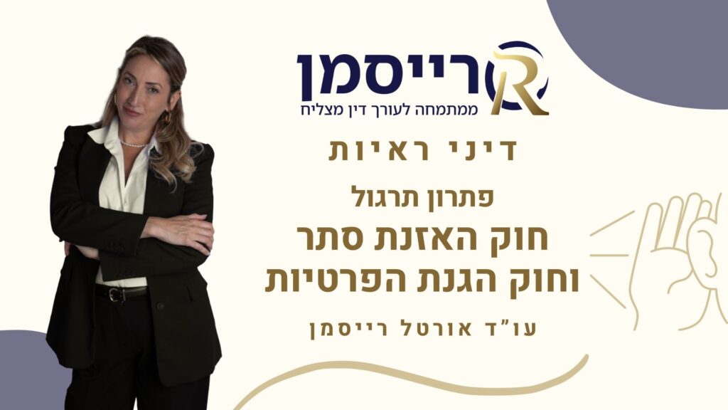 8- פתרון תרגול האזנת סתר וחוק הגנת הפרטיות | עו”ד אורטל רייסמן Read More »